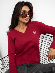 Bordowa bluzka z haftem w kształcie kwiatka RUE PARIS