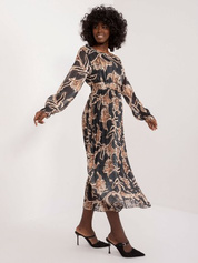 Hurt Niebiesko-beżowa wzorzysta sukienka z falbaną