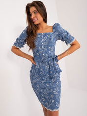 Hurtownia Ciemnoniebieska letnia sukienka z haftem