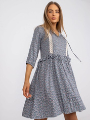 Niebieska sukienka na co dzień we wzory RUE PARIS