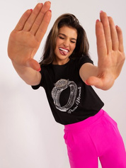 Hurtownia Czarny t-shirt z nadrukiem i napisami