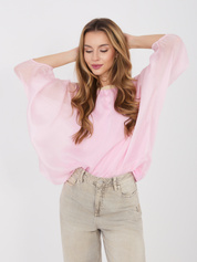 Pastelowa różowa damska bluzka z ozdobnym dekoltem