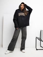 Czarna damska bluza oversize z naszywką RUE PARIS
