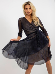 Hurt Granatowa kopertowa sukienka koktajlowa w kropki