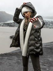 Hurt Jasnoszaro-czarna długa kurtka zimowa z kapturem