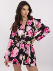 Czarno-różowy elegancki kombinezon w kwiaty