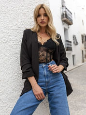 Czarny płaszcz z kieszeniami Polli OCH BELLA