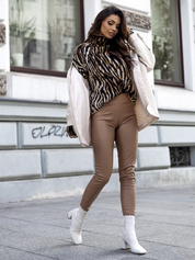 Jasnobrązowe legginsy ze skóry ekologicznej Briana RUE PARIS