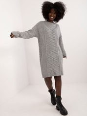 Hurt Szara damska sukienka z dzianiny z długim rękawem