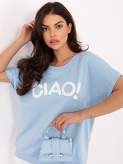 Jasnoniebieska damska bluzka z krótkim rękawem RUE PARIS