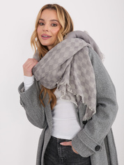 Szaro-ecru damski szal w geometryczny wzór