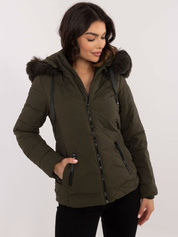 Hurtownia Khaki kurtka zimowa z odpinanym kapturem