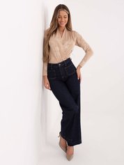 Beżowe sztruksowe spodnie bez zapięcia RUE PARIS