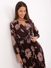 Czekoladowa koronkowa sukienka z długim rękawem RUE PARIS