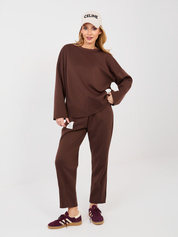 Czekoladowy dresowy komplet z naszywkami RUE PARIS