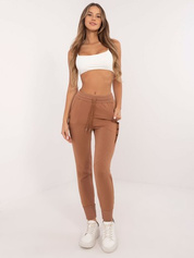 Hurtownia Brązowe damskie spodnie materiałowe z połyskiem