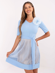 Hurt Jasnoniebieska rozkloszowana sukienka koktajlowa z paskiem