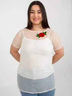 Hurt Jasnobeżowa dwuczęściowa bluzka plus size z naszywką