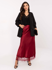 Bordowa satynowa spódnica z koronką RUE PARIS