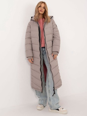 Hurtownia Beżowa długa kurtka zimowa z kapturem