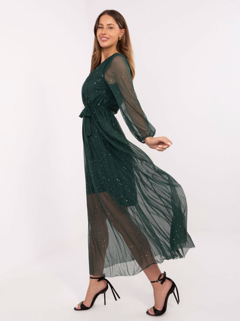 Ciemnozielona rozkloszowana sukienka z falbaną