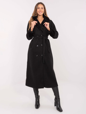 Czarny płaszcz z marszczeniem w talii RUE PARIS