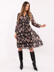 Beżowo-czarna mini sukienka w panterkę