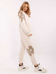 Hurt Beżowy damski komplet ze wstawkami w kwiaty