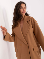 Camelowy dwurzędowy płaszcz damski RUE PARIS