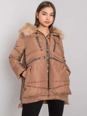 Ciemnobeżowa pikowana kurtka z kapturem Larah