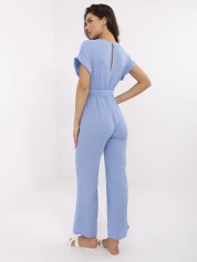 Niebieski muślinowy kombinezon z kopertowym dekoltem