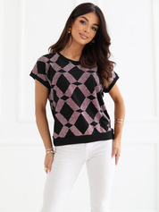 Fluo różowo-granatowy damski t-shirt z bawełny