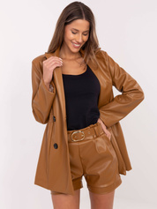 Camelowe szorty z ekoskóry z paskiem RUE PARIS