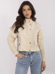 Beżowa krótka kurtka biker z zapięciem na suwak