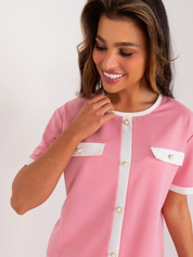 Hurt Różowa damska bluzka wizytowa z krótkim rękawem