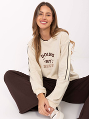 Ciemnobeżowa damska bluza oversize bez kaptura