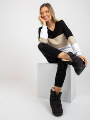 Hurt Czarno-beżowa dresowa bluza basic z dekoltem V