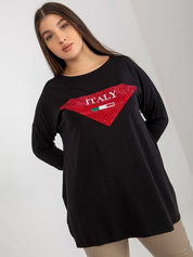Hurtownia Czarna bluzka plus size z aplikacja i nadrukiem