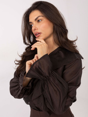 Brązowa wizytowa bluzka z ozdobną broszką
