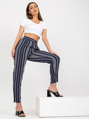 Ciemnoniebieskie letnie spodnie z materiału w paski SUBLEVEL