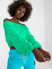 Zielona luźna krótka bluzka z hiszpańskim dekoltem Nineli