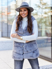 Szara kamizelka futrzana z kapturem Foggia OCH BELLA