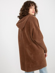 Hurtownia Brązowy damski płaszcz alpaka z kapturem