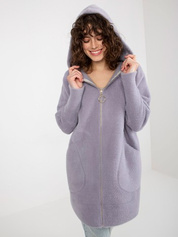 Hurt Jasnofioletowy damski płaszcz alpaka z kapturem