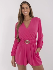 Fuksjowy krótki kombinezon z kopertowym dekoltem