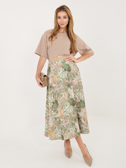 Zielona midi spódnica z nadrukiem w kwiaty RUE PARIS