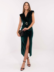 Ciemnozielona welurowa sukienka z ozdobnym detalem
