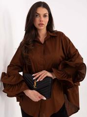 Brązowa bawełniana koszula z falbanami przy rękawach