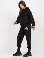 HurtCzarny luźny komplet dresowy z bluzą z aplikacją