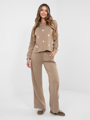 Ciemnobeżowy komplet z bluzą w serduszka RUE PARIS